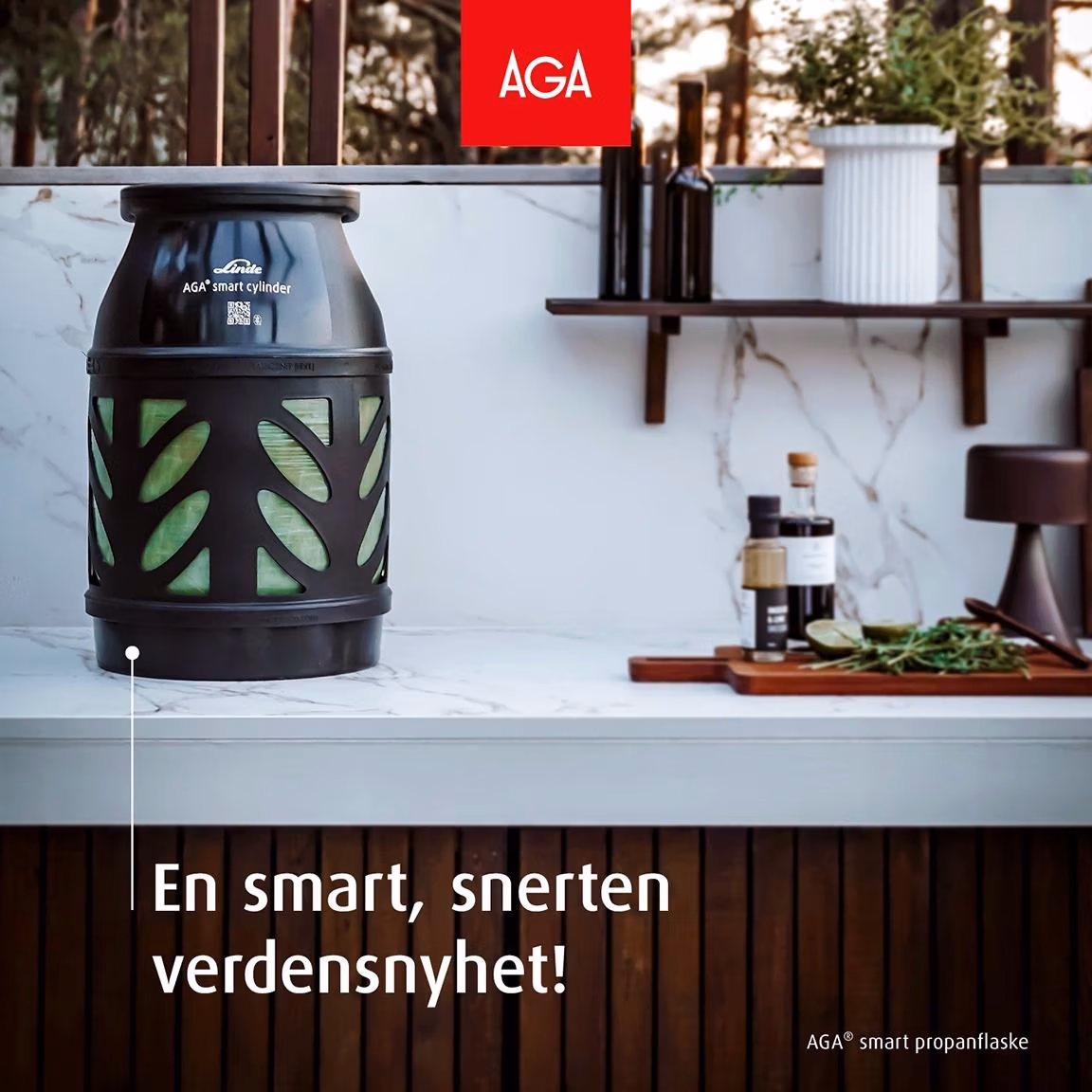 Interiør- og hageentusiast Hanne Holsted promoterer propanflasken og har tatt bilder av nyheten i sitt univers. I tillegg fronter Hanne en konkurranse hvor premien selvsagt er: En smart, snerten verdensnyhet fra AGA Propan.