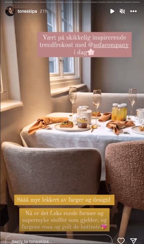 For å øke merkevarekjennskapen ytterligere for SOFACOMPANY i Norge, arrangerte vi en inspirerende trendfrokost med mat fra Oslo Raw i showroomet i Oslo. Der kom sjefsdesigner Line Nevers Krabbenhøft fra Danmark og fortalte om designtrender 2023/24, designprosessen og en ga en sniktitt på nye lanseringer. Fargeekspert hos Involve sin kunde Scanox/Butinox, Jenny Bull-Gustavsen, koblet på de siste fargetrender til hjemmet.